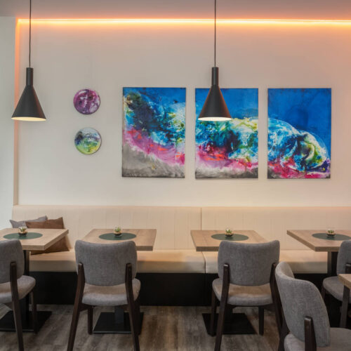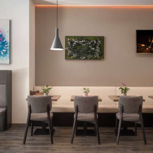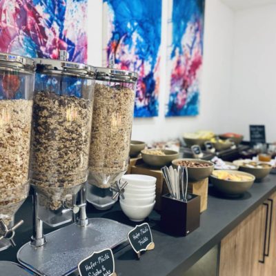 Unser Frühstück finden Sie in der offen gestalteten Lounge in unserer Lobby, welche erst im Februar 2020 komplett renoviert wurde.
